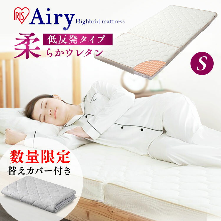 《着後レビューで枕プレゼント》[数量限定!替えカバー付]マットレス シングル 低反発 エアリーマットレス アイリスオーヤマ 洗える 体圧分散 三つ折り 低反発マットレス エアリーハイブリッドマットレス HBT80-S 送料無料