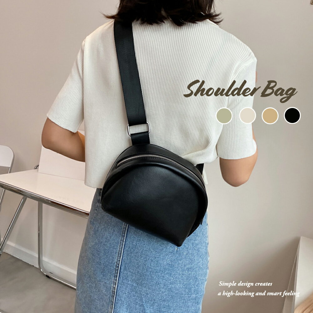 ショルダーバッグ レディース 春夏秋冬 太めストラップ ファスナー マチ広 合皮 シンプル 高見え 黒